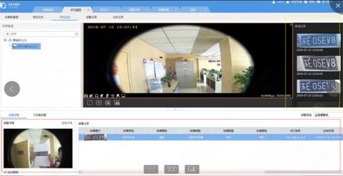 一体机web界面智能设备界面添加相机,需要视图库和相机都在线,客户端软件点击卡口监控(点击前需要一体机第一槽位插入硬盘),车辆驶过就可以看到右侧黄框的车辆车牌信息。如下图