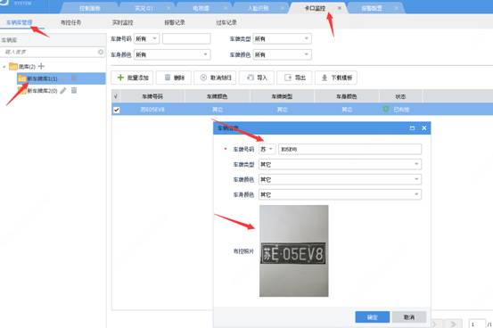 上面图片红色框信息需要配置预警车牌信息及布控车牌图片,然后在布控任务中选择车辆信息完成布控类型(布控类型选择根据现场需自行选择),布控完成后车辆触发后如上图信息显示。配置界面如下图: