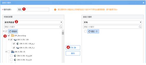 (5) 在右侧点击选择组织,在左侧勾选资源,然后点击添加,将资源划归到目标组织中。同一个资源可同时划归到不同组织(如下图所示)。