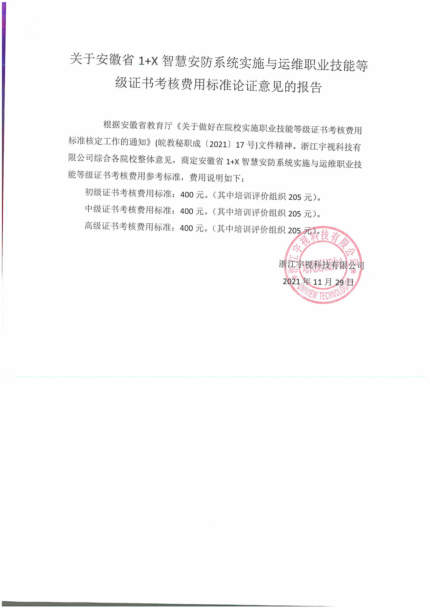 安徽-智慧安防系统实施与运维职业技能等级证书考核成本核算方案