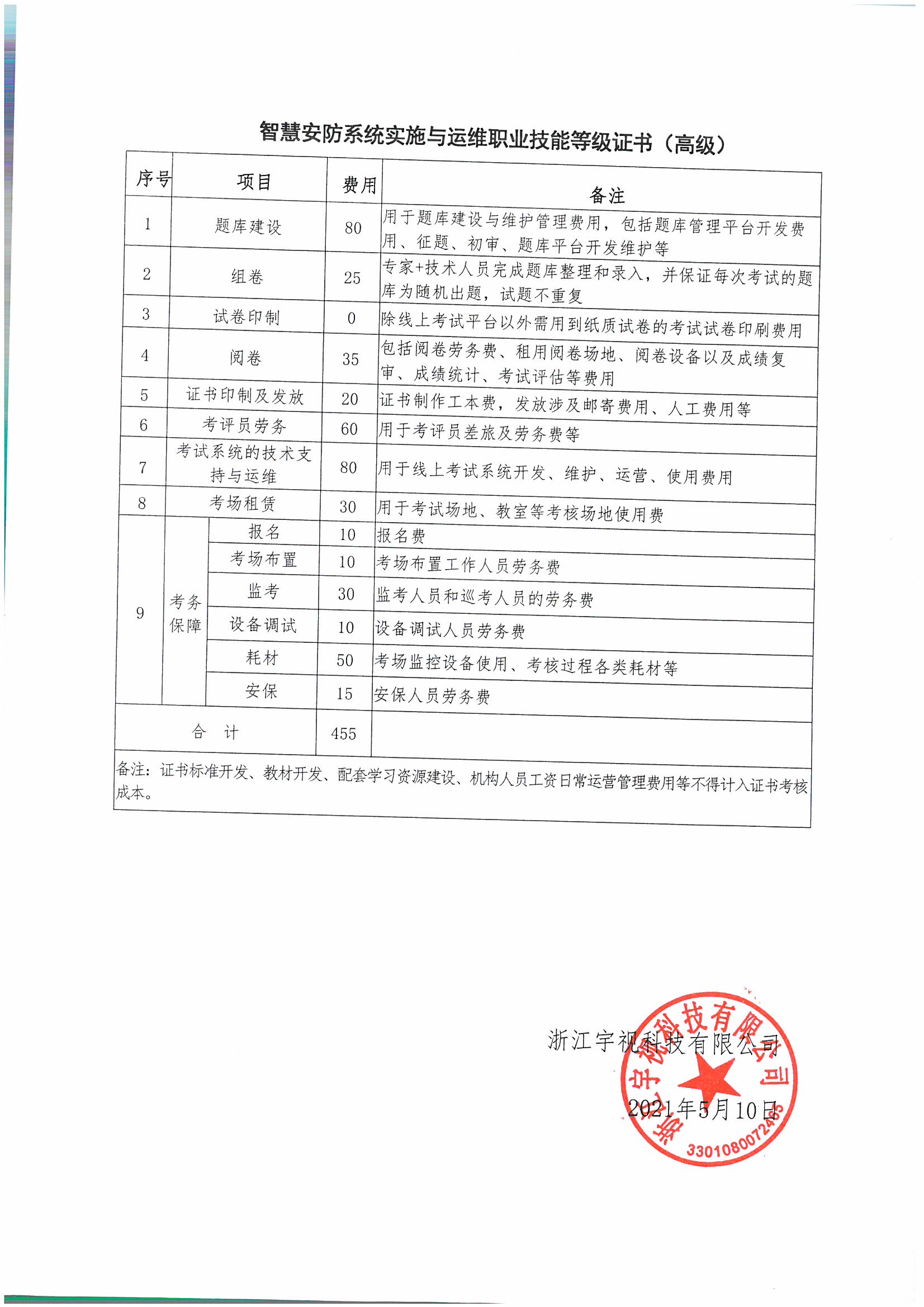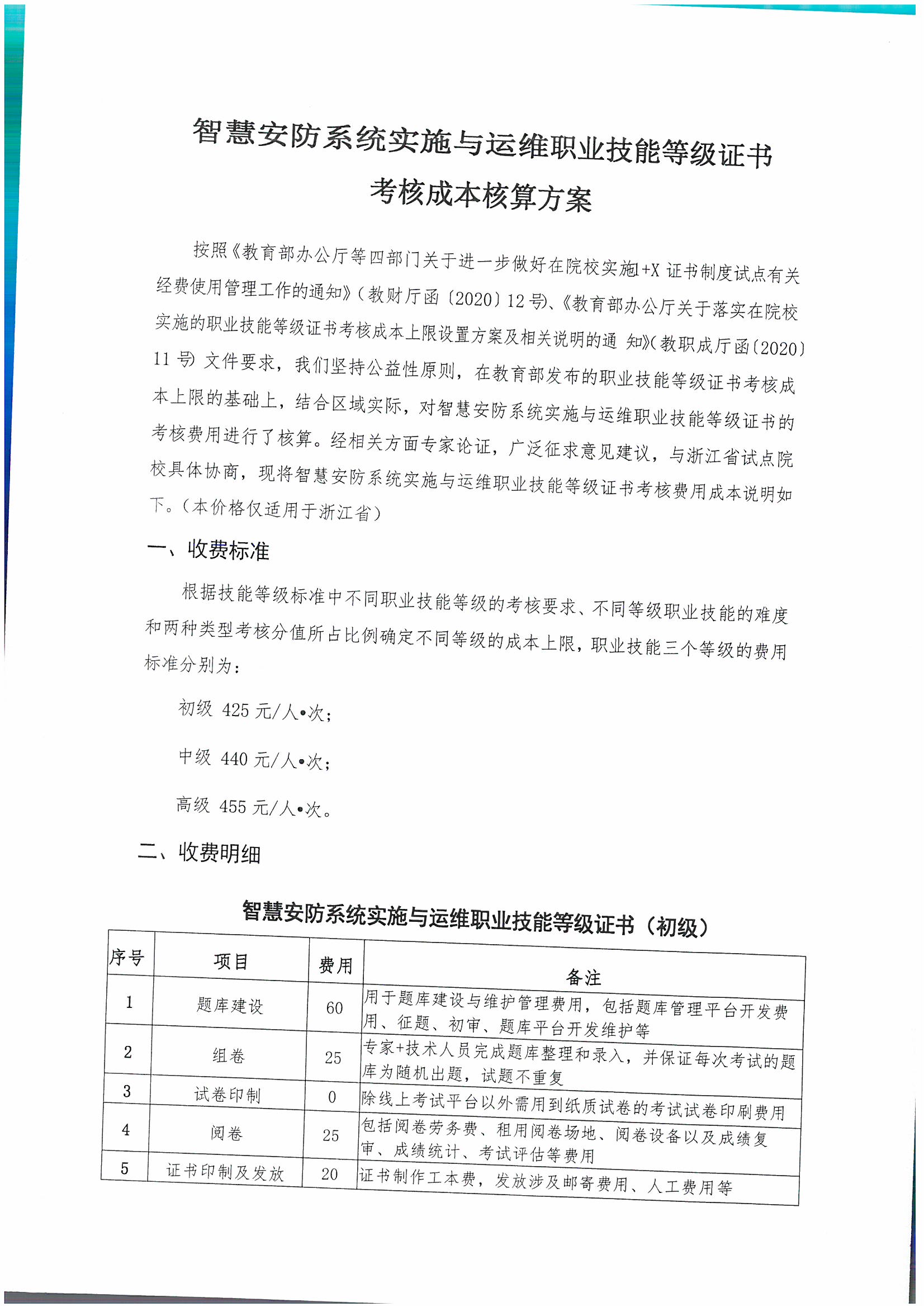 浙江-智慧安防系统实施与运维职业技能等级证书考核成本核算方案