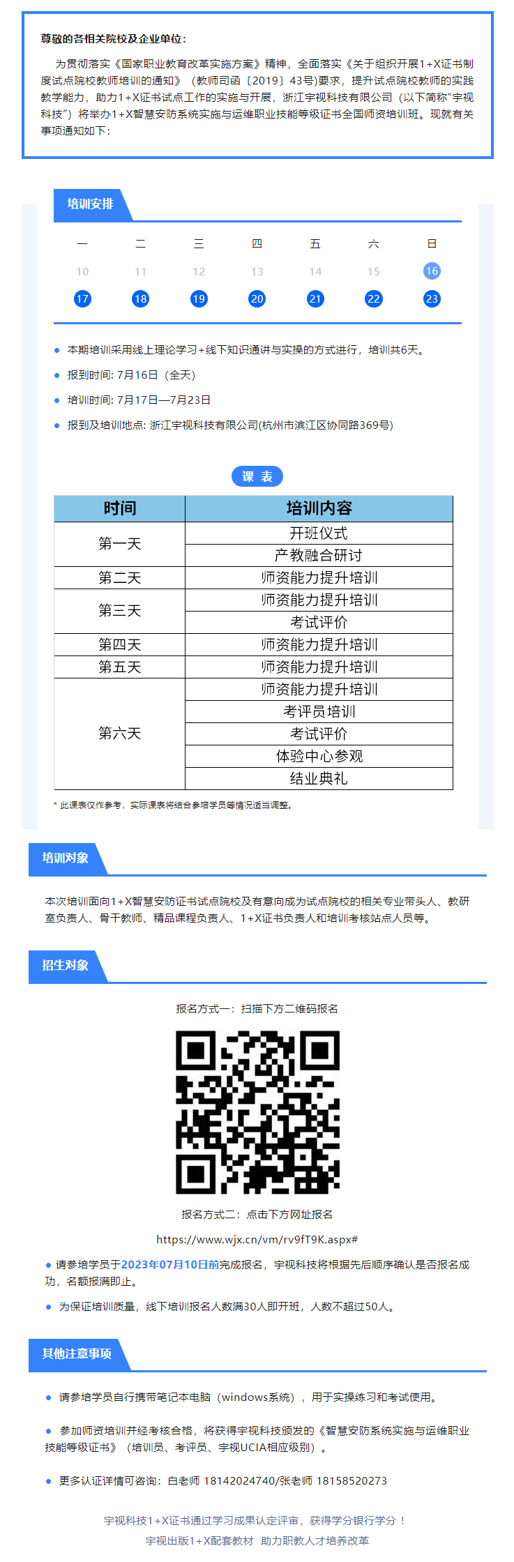 【报名通知】宇视1+X职业技能等级证书师资培训