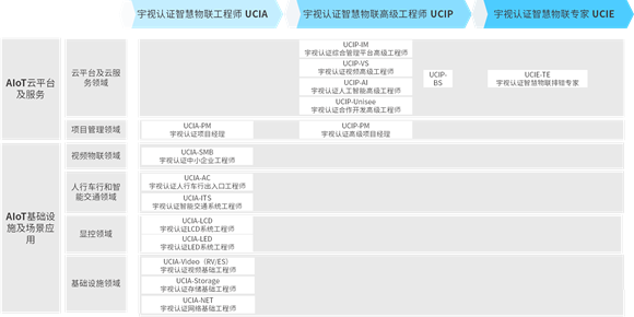 宇视认证工程师(Uniview Certified Engineer,简称“UCE”),是可视智慧物联技术认证体系,聚焦AIoT基础设施场景应用和云平台及云服务两个维度,提供视频物联、人行和车行出入、智能交通、显控、解决方案赋能六大领域的能力认证。