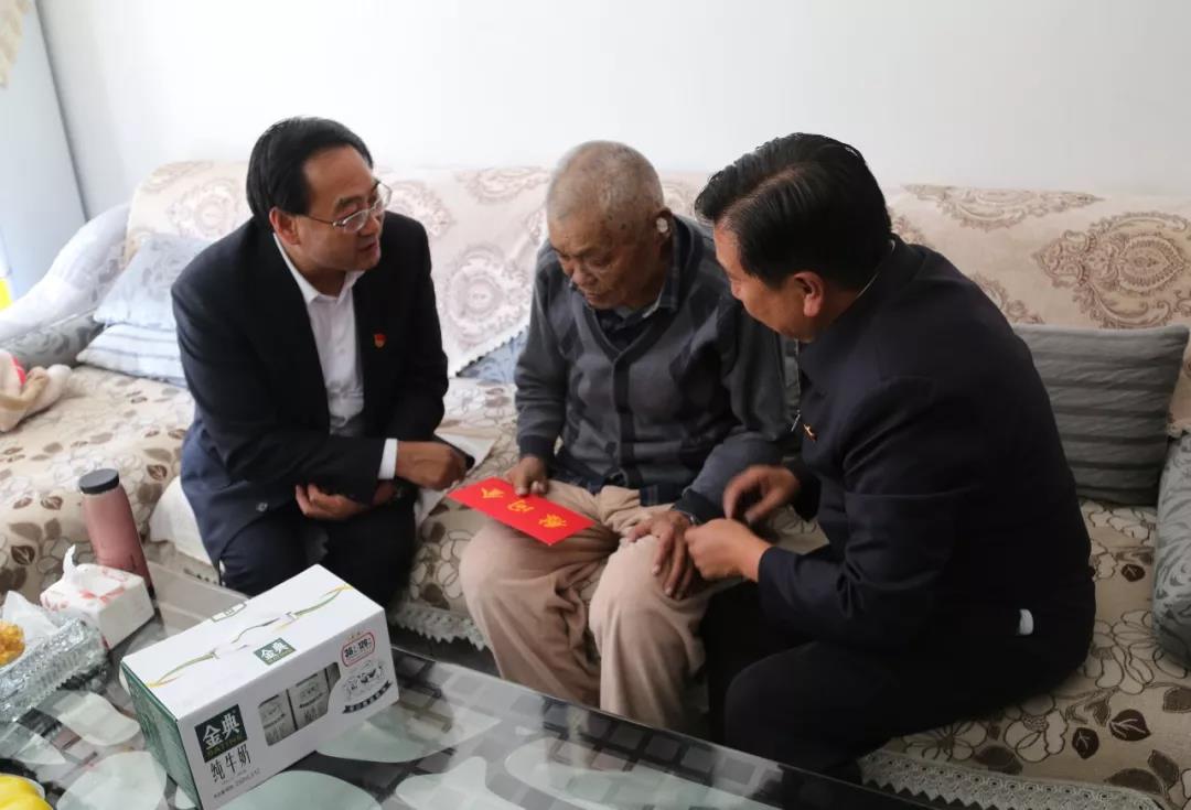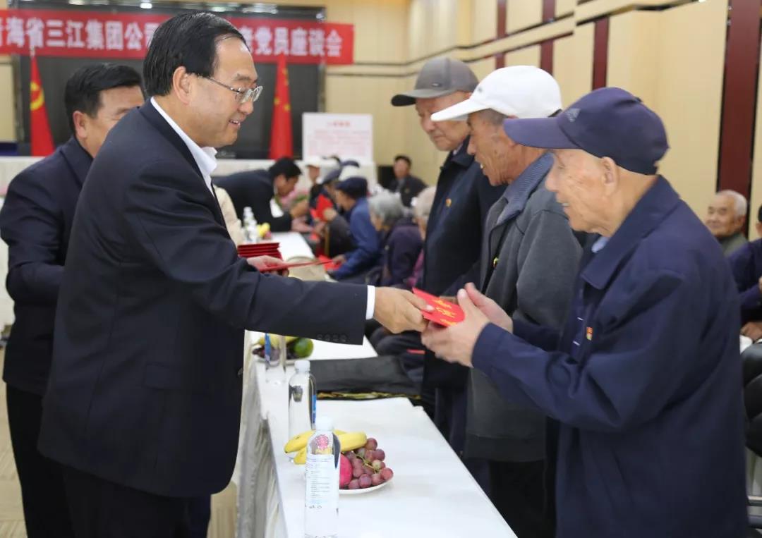 在庆祝中华人民共和国成立70周年、青海解放70周年之际,根据省委、省国资委党委安排部署,三江集团公司党委精心组织,统一安排,由集团公司党委领导班子成员带队,以召开座谈会、家中走访慰问等形式,对151名党龄达到50年以上的老党员开展了走访慰问,把以习近平同志为核心的党中央和省委省政府对老党员的的关怀关爱及时送到他们的心中。