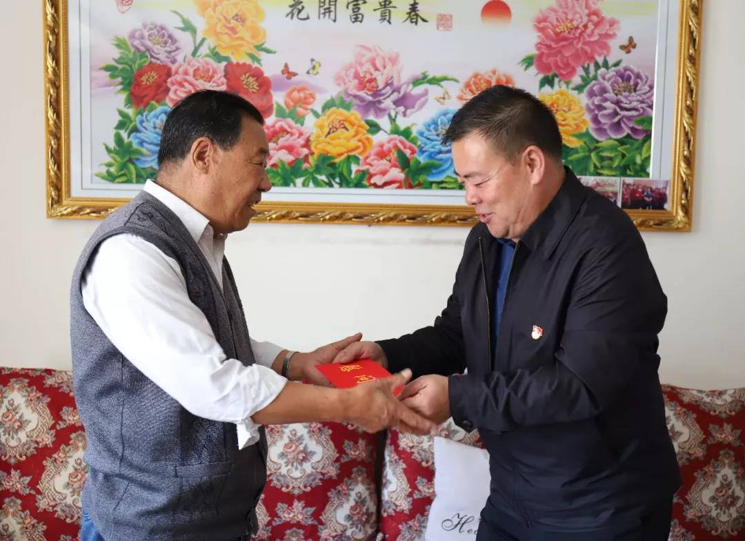 图为集团公司党委副书记祁生珠到门源种马场退休老党员张生德家中走访慰问。