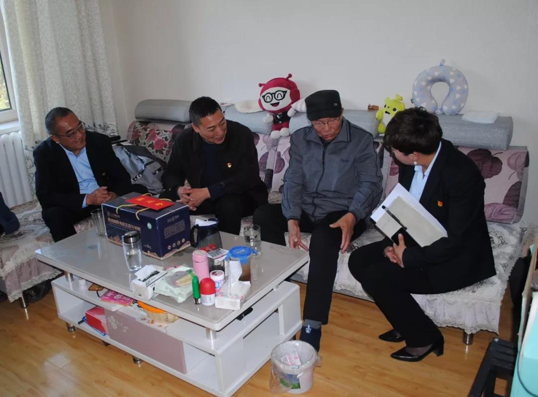 图为集团公司党委副书记祁生珠到门源种马场退休老党员陈仁家中走访慰问。